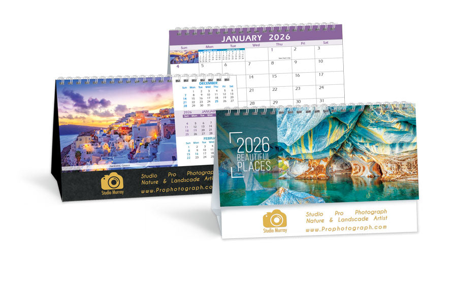 12-month, 14-sheet desk calendar. One side full month, other side 3 months.