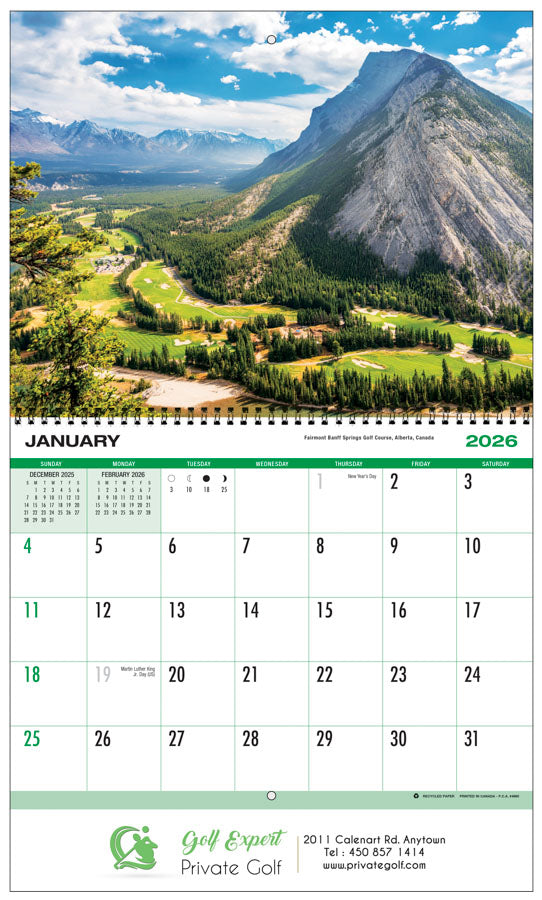 Twelve-month calendar depicting beautiful golf courses around the world.