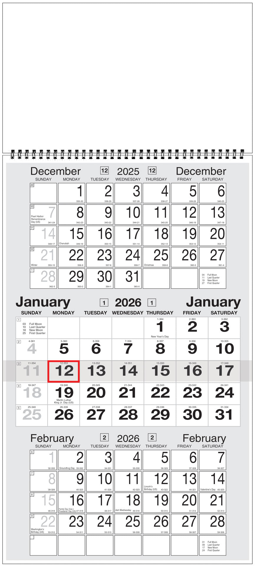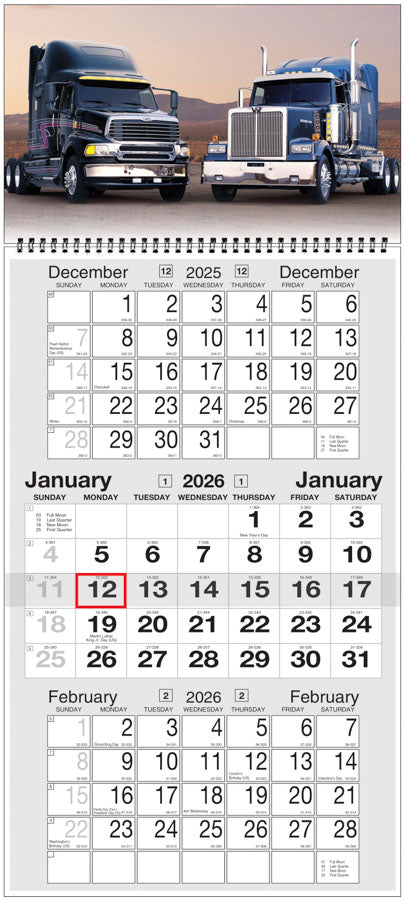 12-sheet 3-month wall planner with large date squares for notes.