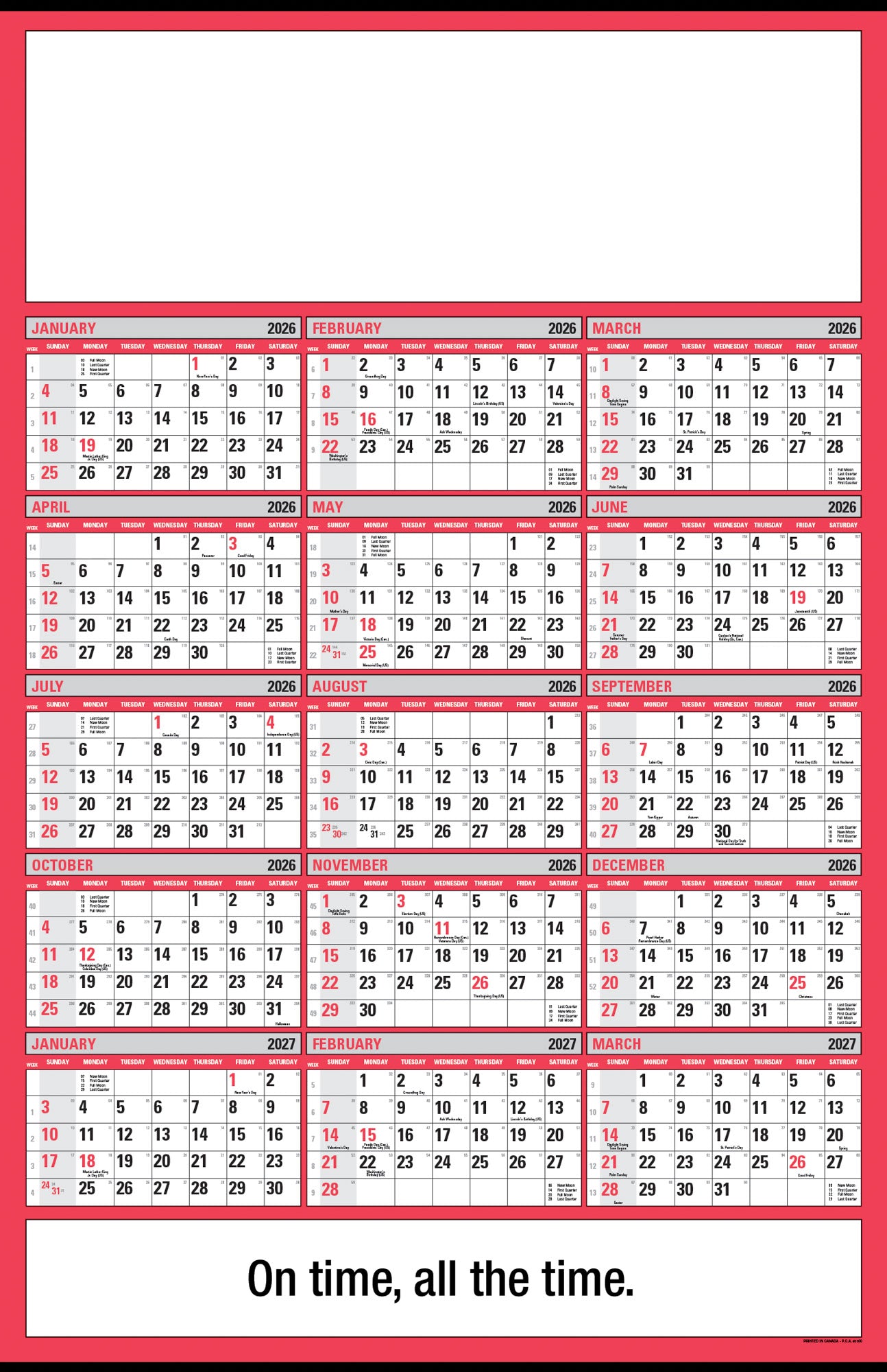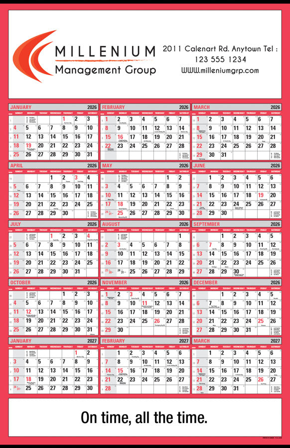 15-month wall calendar from Jan 2026 to Mar 2027.